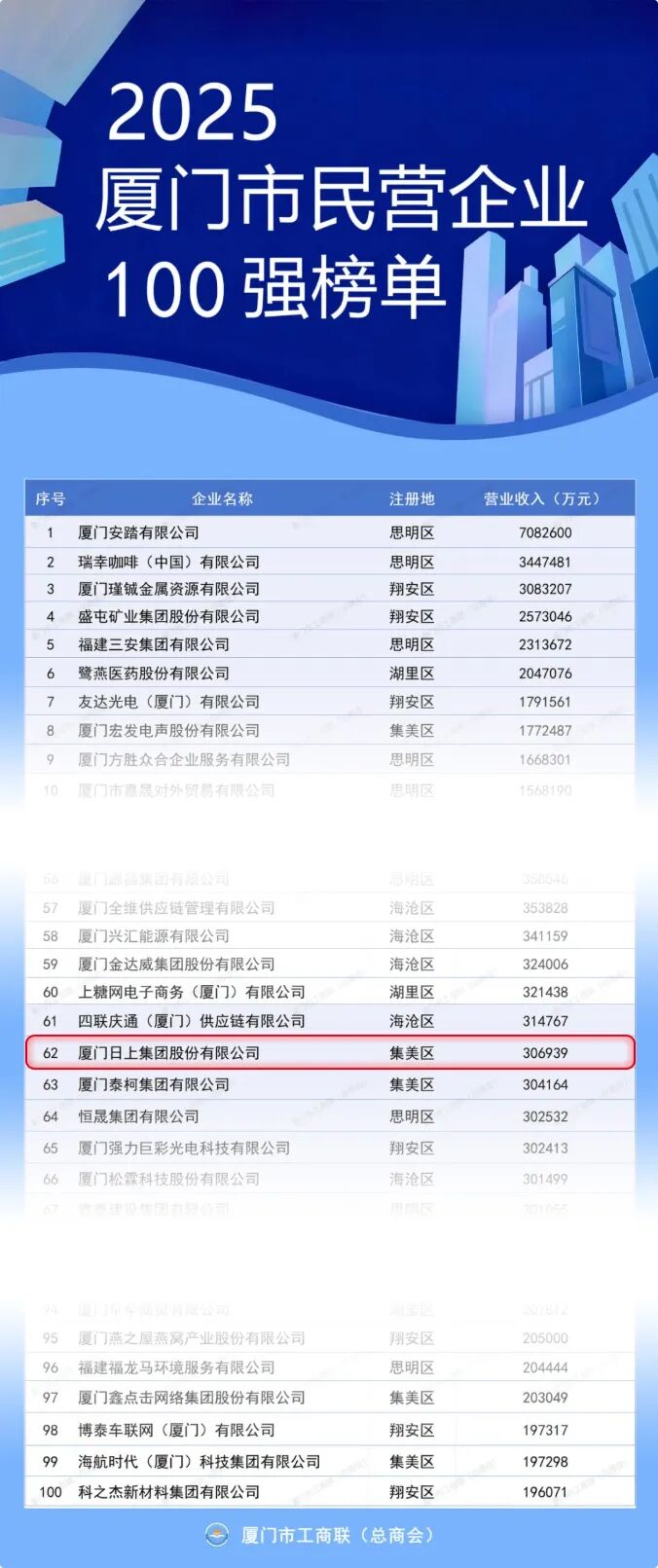 日上集團 | 榮登 2025廈門(mén)市民營(yíng)企業(yè)100強榜單